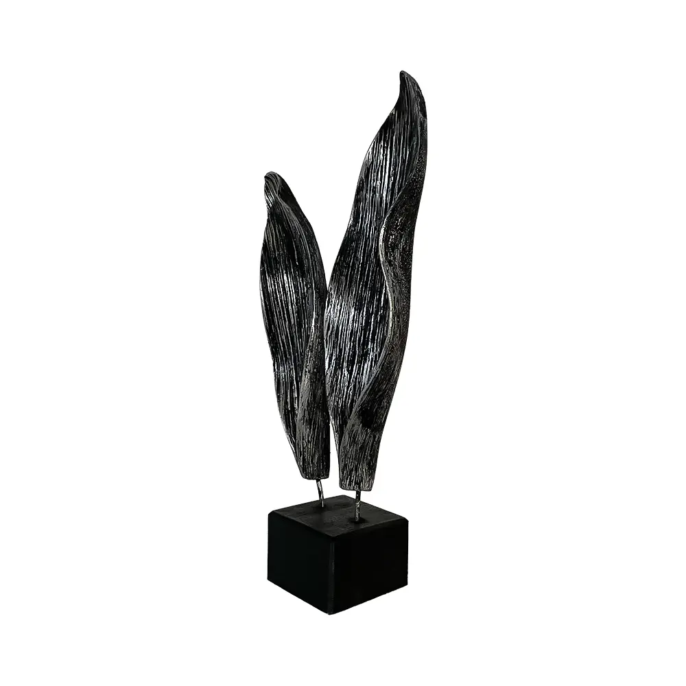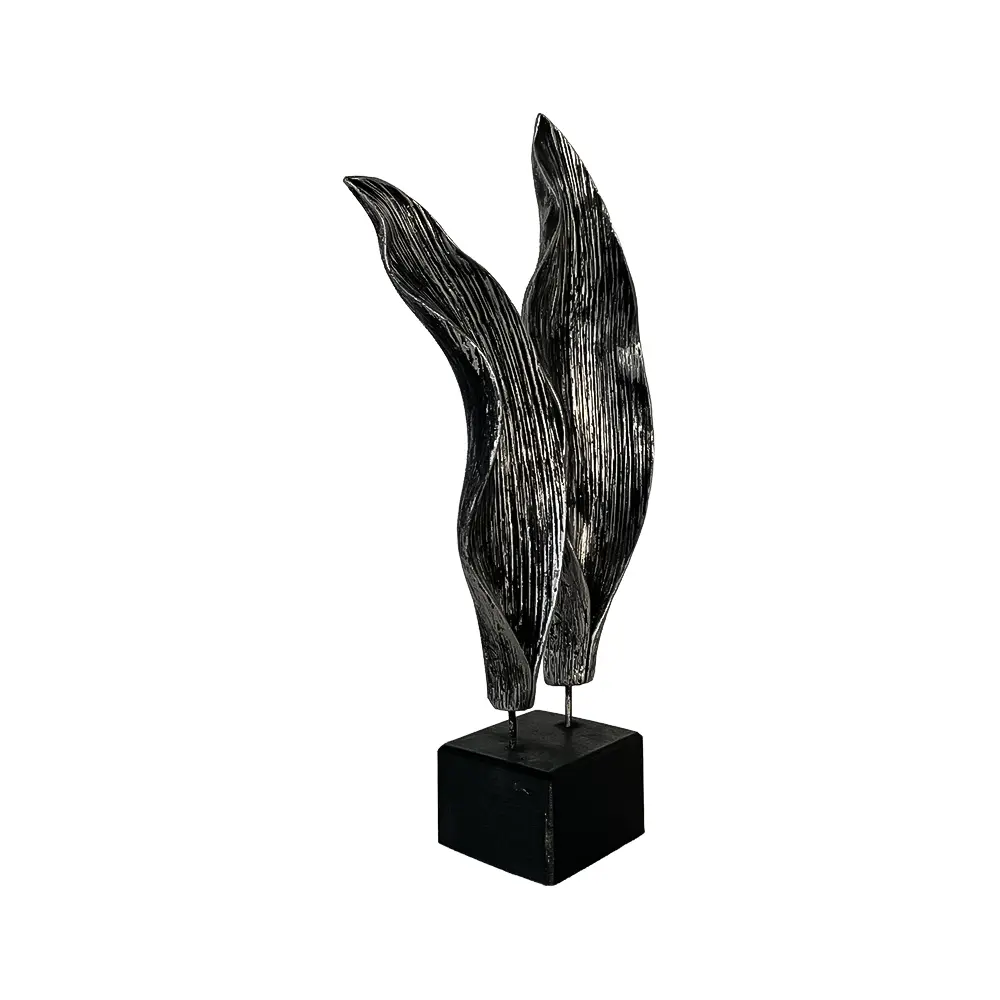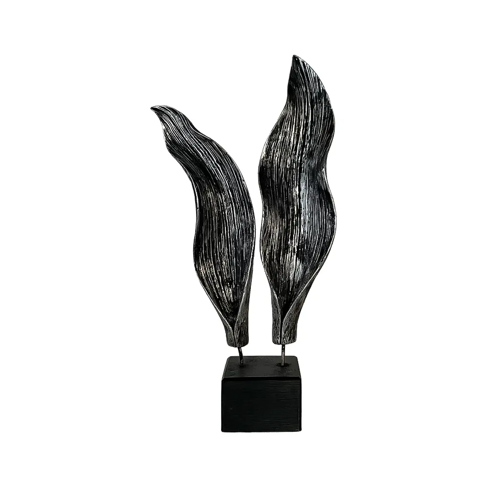 Dekoratif İkili Yaprak Biblosu, polyester malzemeden yüksek kaliteli işçilikle üretilmiş olup, ev ve ofis dekorasyonunuza zarif ve minimalist bir dokunuş katmak için tasarlanmıştır. Doğanın dalgalı ve organik hatlarından ilham alan bu biblo, fırçalanmış eskitme görünümlü gümüş, altın ve bej tonlarıyla zenginleştirilerek modern ve sofistike bir doku kazanmıştır. İki yaprağın dinamik duruşu, sağlam ve şık siyah kübik bir kaide üzerine monte edilmiş olup, ürüne stabil ve estetik bir temel sağlar. Kitaplık, sehpa veya dresuar gibi çeşitli yüzeylerde sergilenmeye uygun olan bu parça, sade ve zamansız tasarımı sayesinde modası geçmeyecek, aynı zamanda sevdikleriniz için anlamlı bir hediye alternatifi oluşturacaktır.